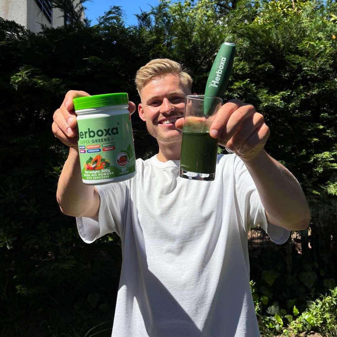 You can enjoy Herboxa® SUPER GREENS at any time of day—but for the best results, we recommend starting your morning with it on an empty stomach. That’s when your body is primed to absorb the nutrients most effectively.Just mix one scoop with 250–300 ml of cold water, stir or shake, and you’re good to go.It tastes great on its own with water—clean, refreshing, and naturally sweetened. Some people love adding a splash of lemon, blending it into a smoothie, or mixing it with oat milk. However you take it, you’re giving your body a powerful plant-based boost.