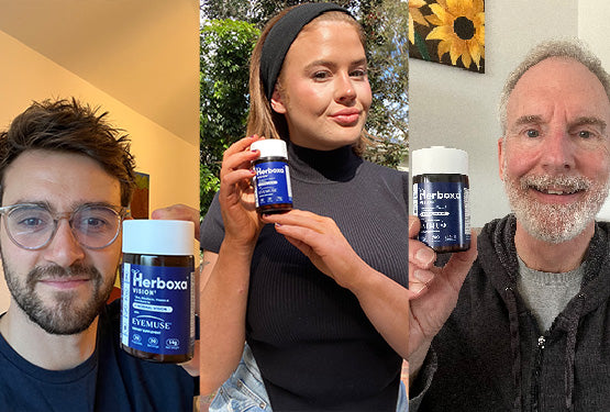 Herboxa®Vision uporablja patentirani EYEMUSЕ®, spojen z vitamini, kot so E, A in D, ter minerali, kot sta cink in baker. Ti elementi delujejo v tandemu in blažijo obremenitev oči, filtrirajo modro svetlobo in nudijo zaščito, zaradi česar je ta izdelek odlična izbira za vsakodnevno nego.